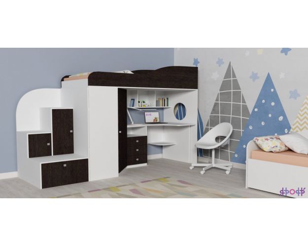 Кровать-чердак Кадет-1 Белое дерево/Венге