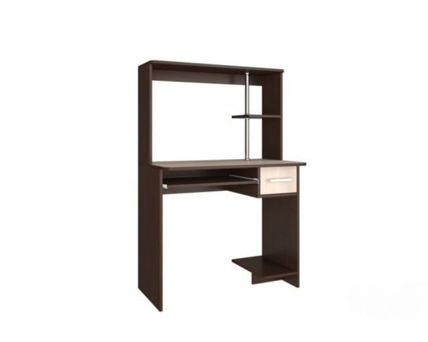 Компьютерный стол «Дебют» оборудован выдвижным ящиком на роликовых направляющих, полками под принтер и системный блок, а также выкатной полкой под клавиатуру.