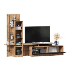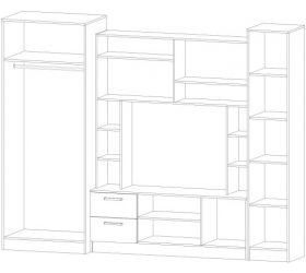 В наличии модели, сочетающие открытые ниши, скрытые отделения, выдвижные ящики. Конструкции предусматривают специально оборудованное место под телевизор и иную аппаратуру.
