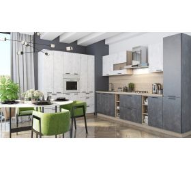 Кухонный гарнитур Пасадена 1,5 белый / шёлковый камень / дуб вотан