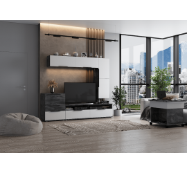 Пенал двустворчатый Моника темно серый лофт / дуб золотистый сочетает в себе красоту и практичность, что делает ее идеальным вариантом мебели для украшения вашей современной комнаты.
